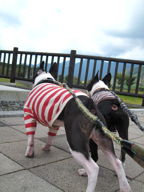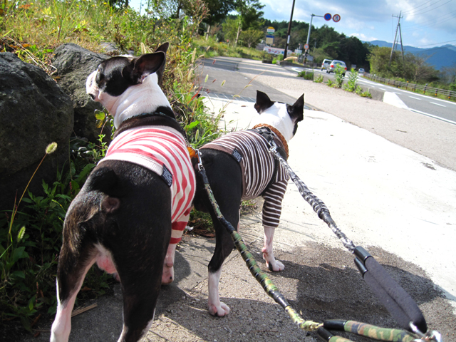 六と汐もやはり早起き、アスファルトやちょっとした草むら、木陰を散歩します。