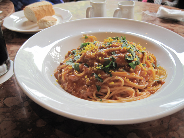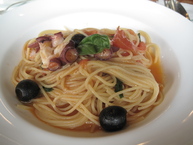 ランチタイムだったのでパスタランチを注文、パスタはボロネーゼとタコと黒オリーブのトマトソース、