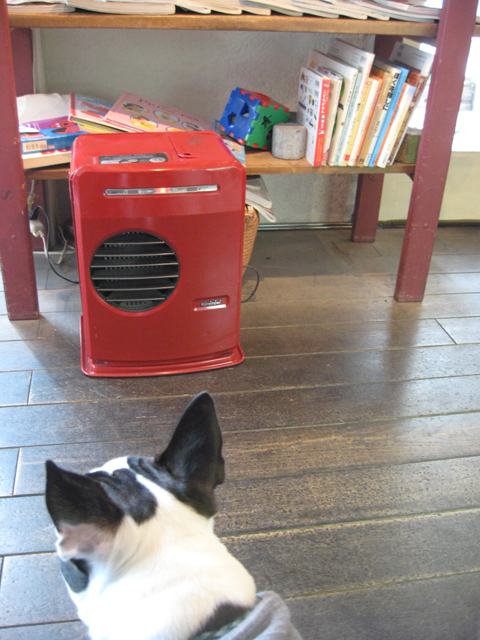 我々のテーブルに向けてファンヒーターを置いてくれた。
