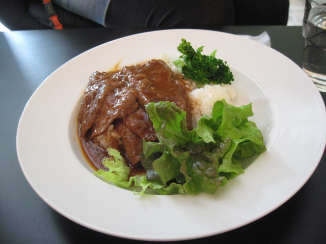 奥さんはビーフシチューライスを注文。ドリンクつきで1100円でした。