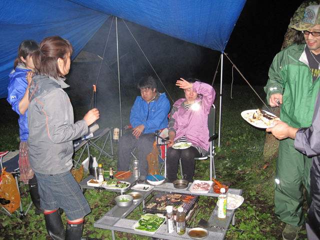 焚き火に鉄板では餃子を焼いたりしてこれまた美味かったねぇ。
