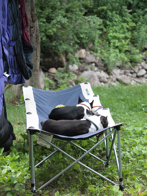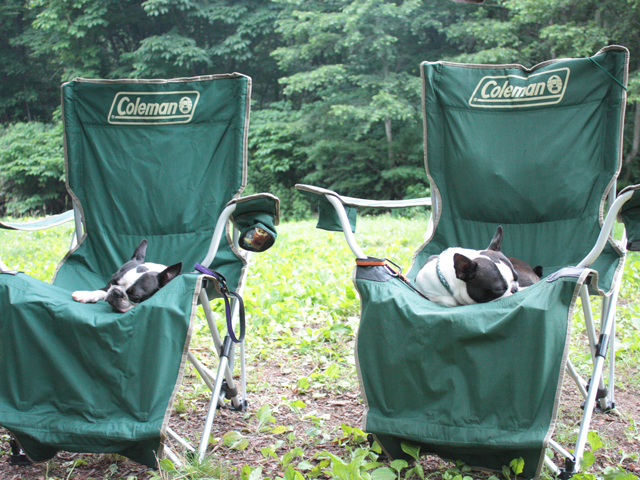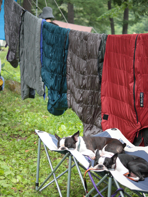 ついでに六と汐を載せたままフォールディングコットを寝袋の陰に移動。