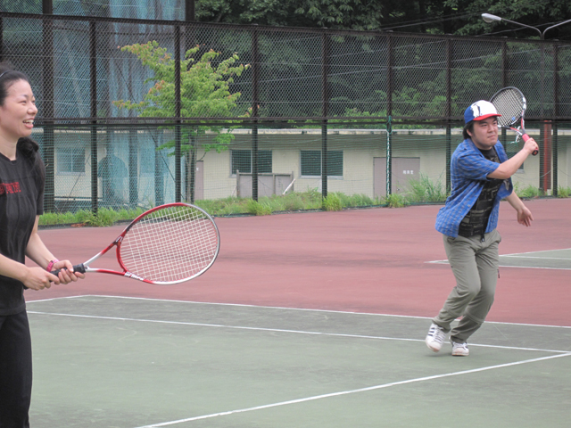 ジュンちゃんも中学時代軟式テニス部、タケダは高校時代に硬式テニス部だった事から