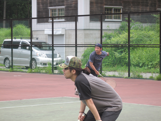 いっつぁん、タケダ、ジュンちゃん、トモちゃんとワタシは村営テニスコートに行く事に。