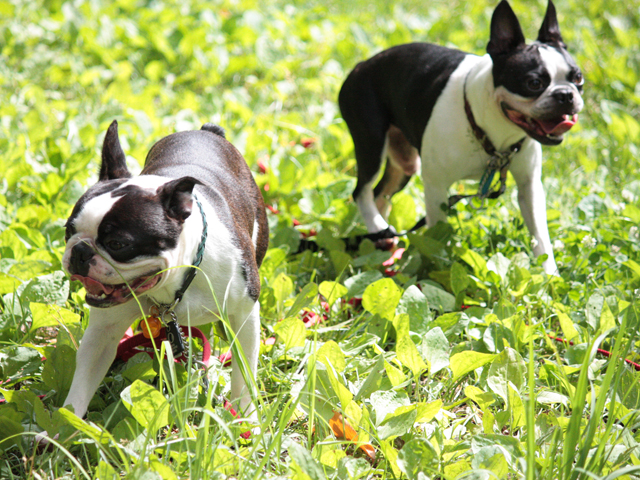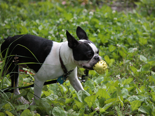 コーヒーを飲んだらば、六と汐の期待に応えてボール投げの時間。