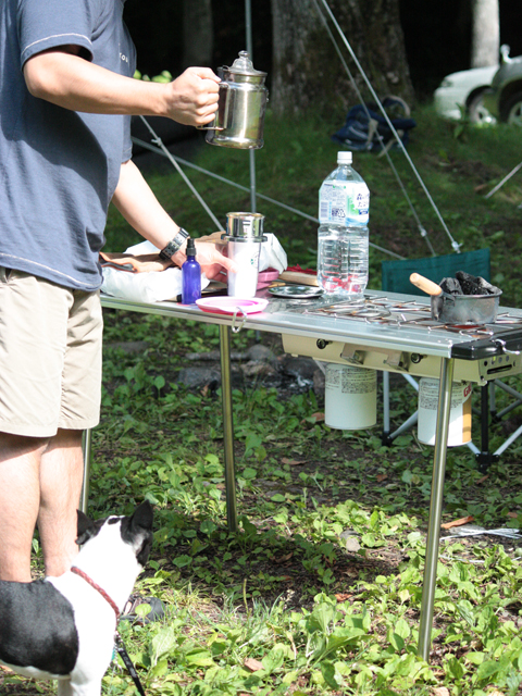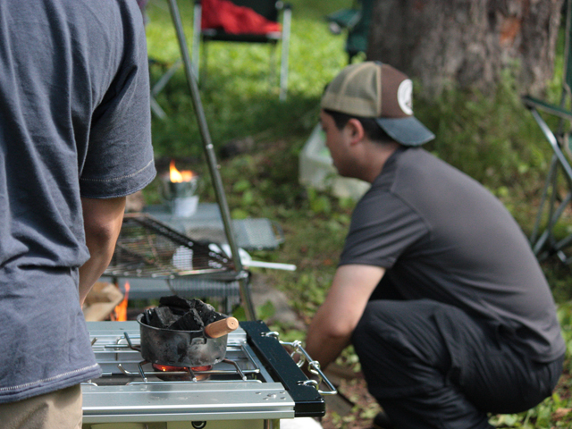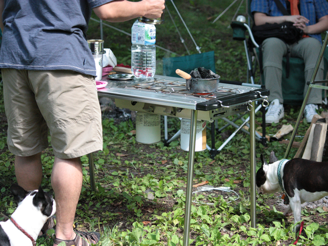 天気がよいのでIGT(アイアングリルテーブル)にセットしたツーバーナーコンロを