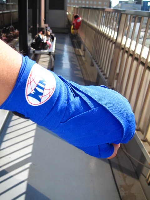 緩めにとめたバンテージ、マジックテープ式です。