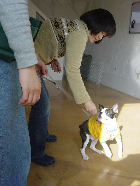 今日はお座りと伏せを言葉のコマンドを無しで手の動きだけでチャレンジ。