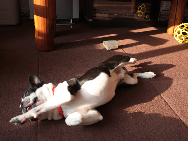 六は朝やなんかの寝起きには準備運動をするようです。