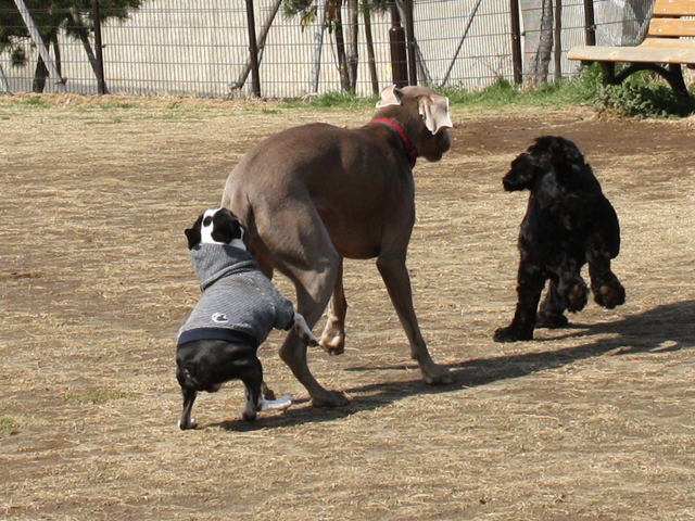 早速六の大好物の大型犬を見つけて遊びに誘いに行っちゃった。。。