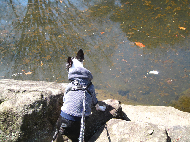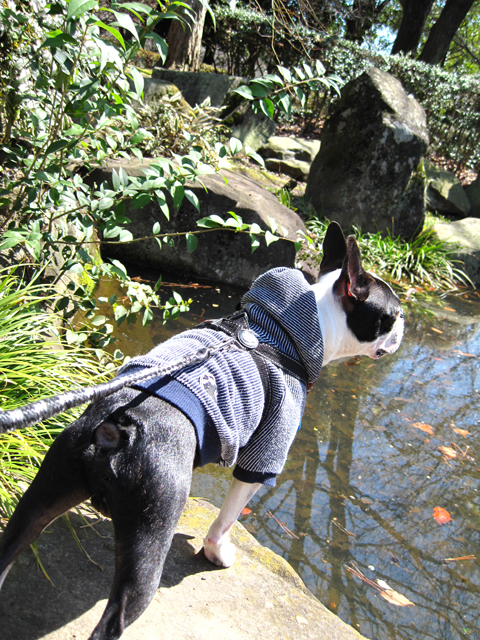 六は喉が渇いていたのか池の水を飲もうと何度かチャレンジしてみるものの