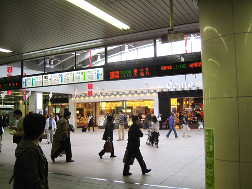 電車に揺られる事50分、目的地に到着し、ホームからエレベータで改札階へ。