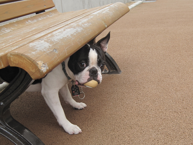 誰も取らないのにベンチの下で必死に咥えてます。。。