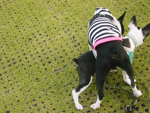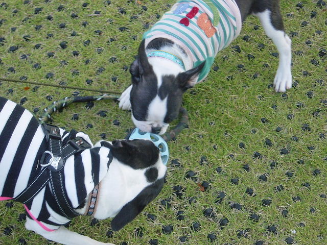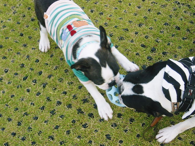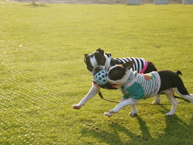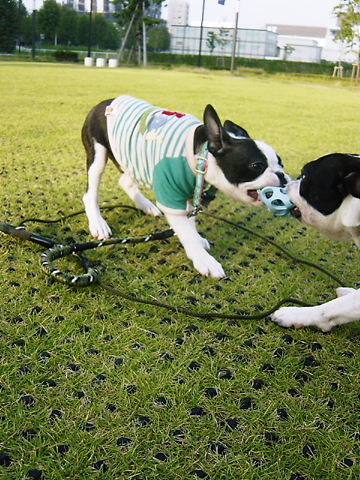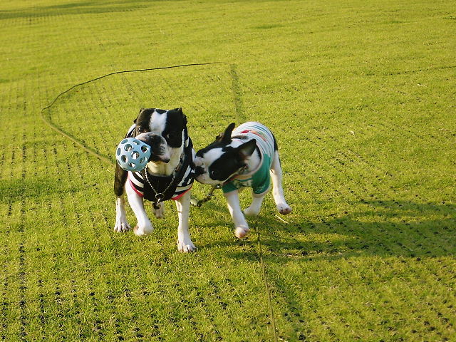 この後、ブリュッセルグリフォンのジンくんが合流し、六と追いかけっこ、汐とは相撲をとって