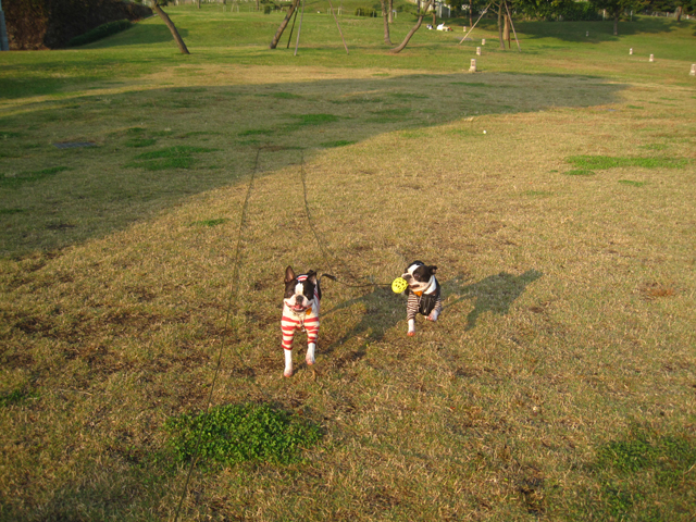 ロングリードに付け替えてボール投げで結構な運動したね。