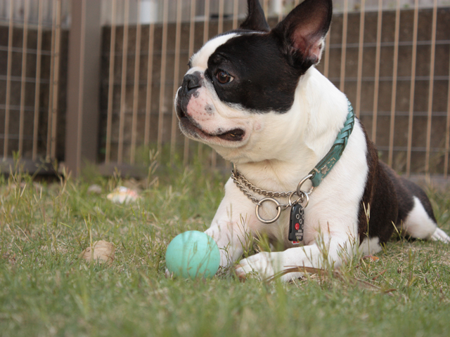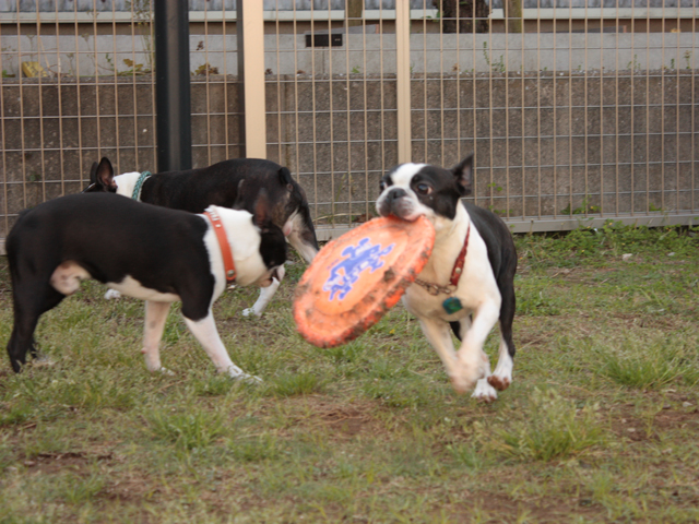 六は大好きなフリスビーでご満悦。