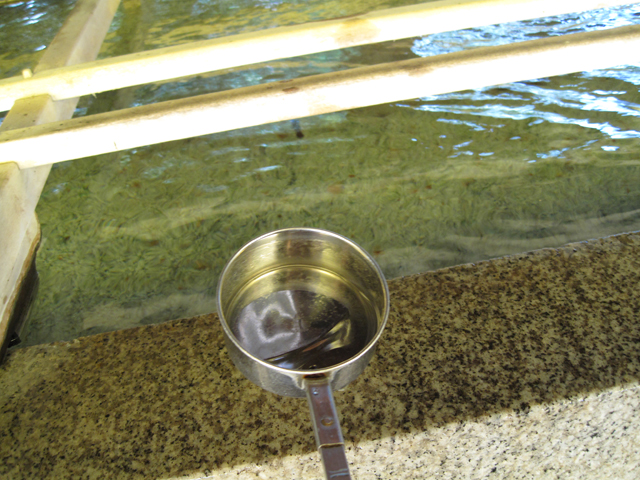 また持ち替えて左手に水を汲んで口をゆすいで左手を洗う。