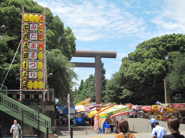 カードを無事に渡した時に靖国神社でお祭りがやってるから見ていけばと