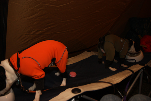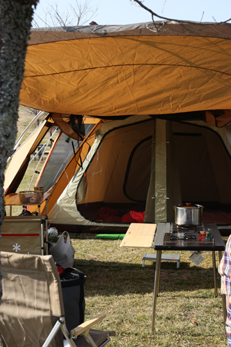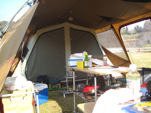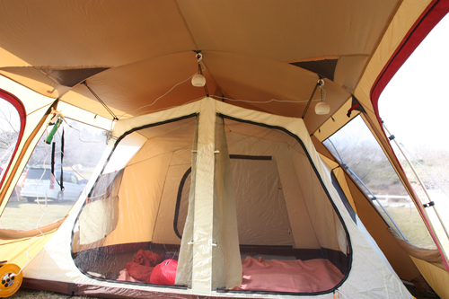 インナーテントの中に電気カーペット入れ暖めておきましょう。