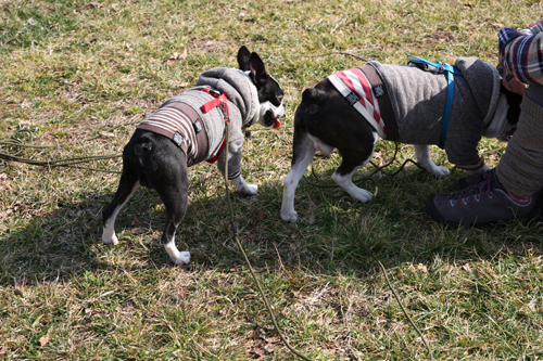 少し冷えてきたので六と汐も防寒着着用で。。。