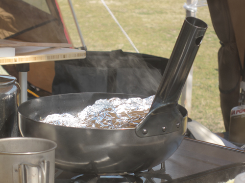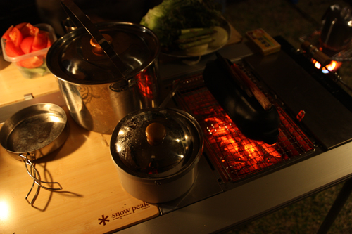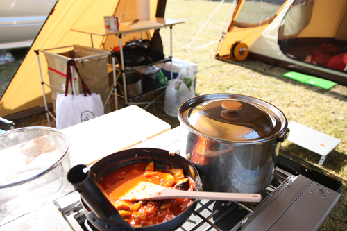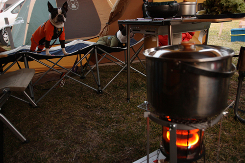 そんなこんなで散歩しながらテントに戻り夕飯の支度。