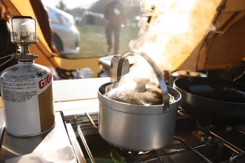 ストーブで温まりながら湯を沸かしたり、スープの準備が出来たり
