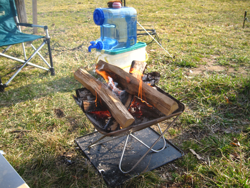 薪がまだ少し残っていたので消化しがてら焚き火をし。