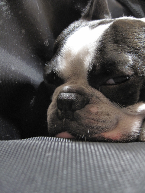 シャンプーも済んで疲れたのかこのままバギーの中でいびきをかいてました。