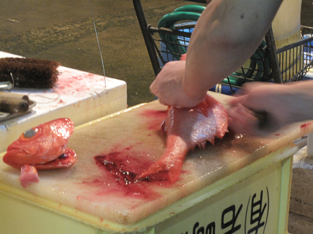 キンメはここが一番安かった、しかも市場の店では珍しく鱗取りはおろか