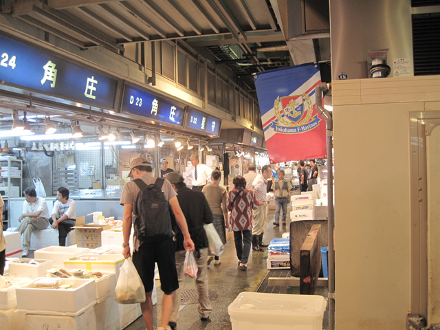 この日は第一土曜日、六と汐の散歩コースにある近所の横浜中央市場。