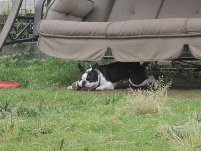 そしてここブランコの下です、家でもソファの下の狭いスペースに居る事が多いけど、