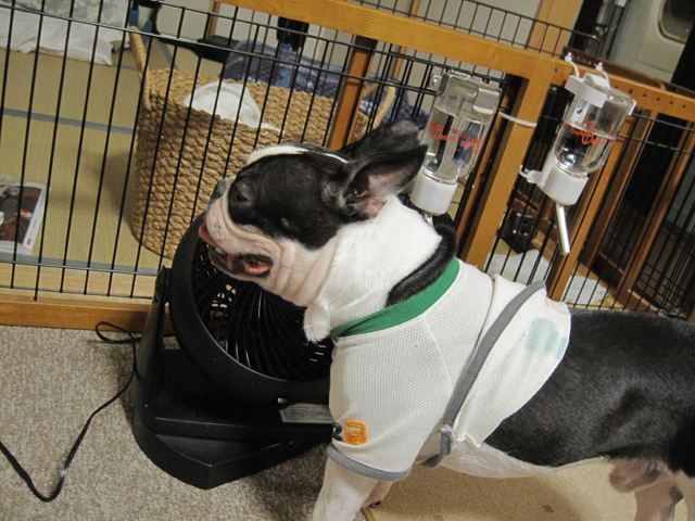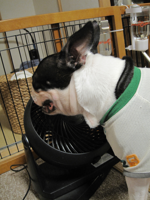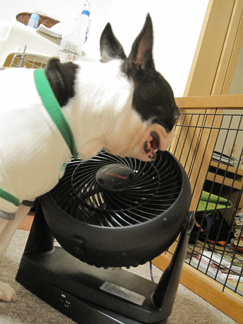 よく扇風機やファンヒーターの前を陣取る犬とかを他の人のブログとかで見たりして