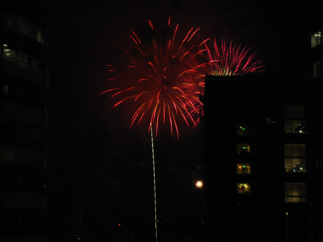 んで我が家からの花火はこんな感じ。