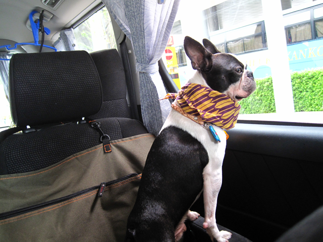 この暑さで犬達に負担がかかるとイカンというわけで会場前のタイムスに停めました。。。
