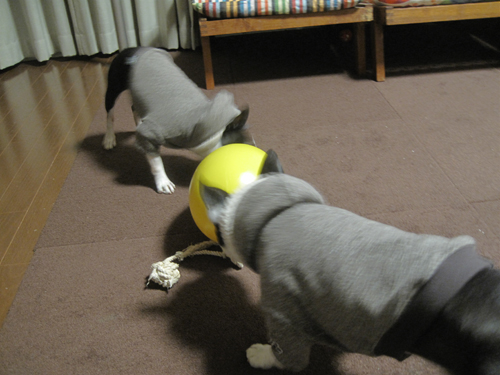今日は一生懸命、ボールで遊びましたよ。