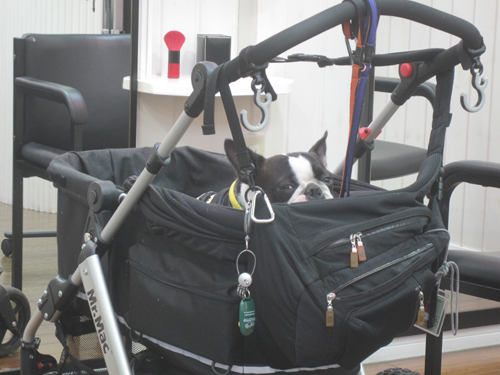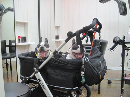 駐車場からバギーに乗っていざ髪切り処へ。