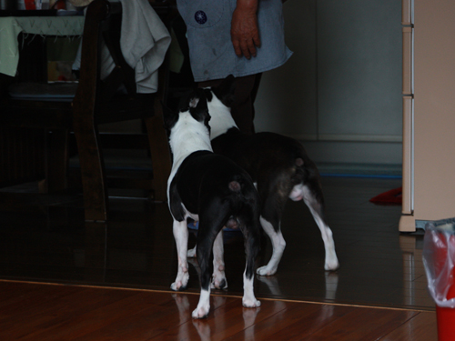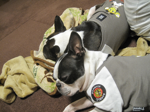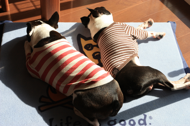 なんか変わりばんこに寝てたみたい、汐が寝てるときは六はオスワリしてたし