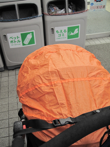 途中傘を買ってね、六と汐はバギーに入ってもらいレインカバーをかけて。