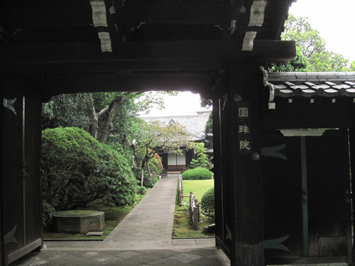それを折れて少し歩くと円珠院があります、緑がきれいな庭です。