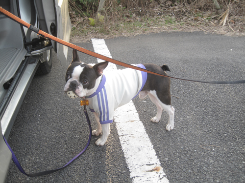 門前まで観に行きたいという事で待ってます、さすがに塀で仕切られた
