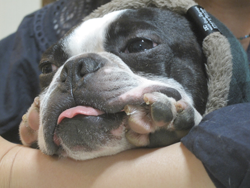 渋谷で電車に乗ったまでは良かったけど、ロクの息が荒くなってきてヨダレも少し垂れはじめ