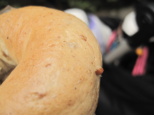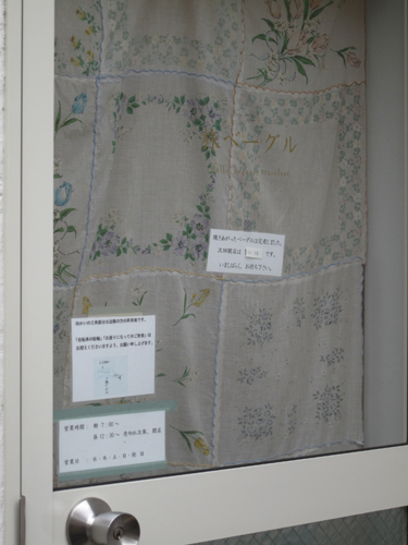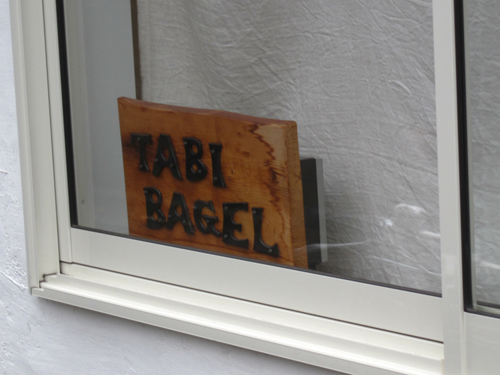 旅ベーグルの紙袋、こんな所で小さく主張してました。