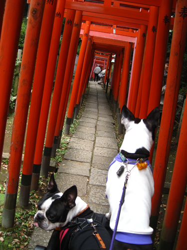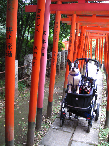 六と汐もバギーに乗って鳥居をくぐり抜けてみました。