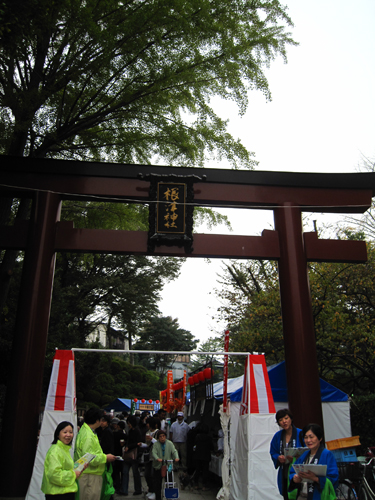 ベーグルを食べにやってきた、根津神社は下町まつりのメイン会場的役割でした。