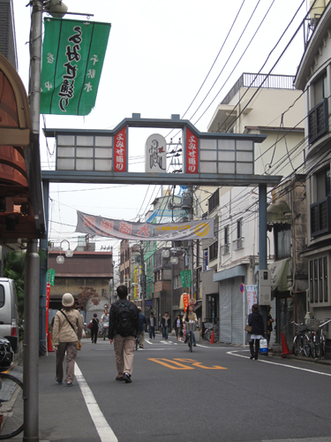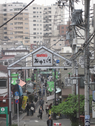 日暮里駅北口を出て目の前の道を谷中へ向かう、