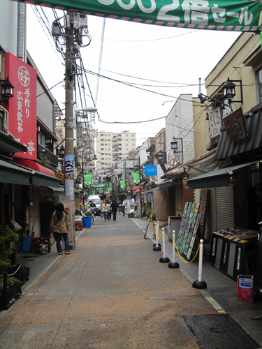 谷中銀座商店街の終点を南北に不忍通りと並行に走るここよみせ通り。